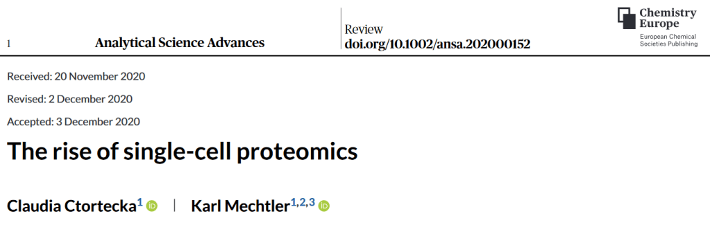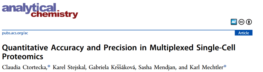 Claudia Ctortecka, Karel Stejskal, Gabriela Krššáková, Sasha Mendjan, and Karl Mechtler. “Quantitative Accuracy and Precision in Multiplexed Single-Cell Proteomics.” Analytical Chemistry, December, 2021,