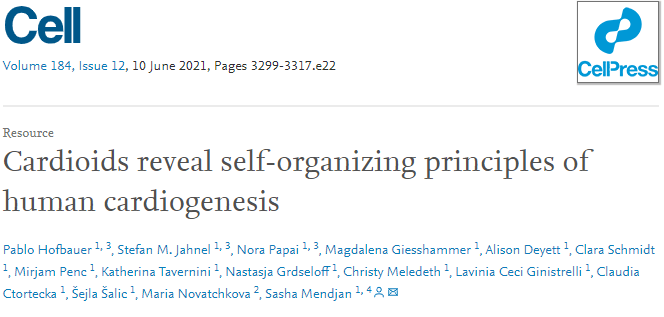 Pablo Hofbauer, Stefan M. Jahnel, Nora Papai, Magdalena Giesshammer, Alison Deyett, Clara Schmidt, Mirjam Penc, Katherina Tavernini, Nastasja Grdseloff, Christy Meledeth, Lavinia Ginistrelli, Claudia Ctortecka, Sejla Salic, Maria Novatchkova and Sasha Mendjan. “Cardioids Reveal Self-Organizing Principles of Human Cardiogenesis.” Cell, May 20, 2021. https://doi.org/10.1016/j.cell.2021.04.034.